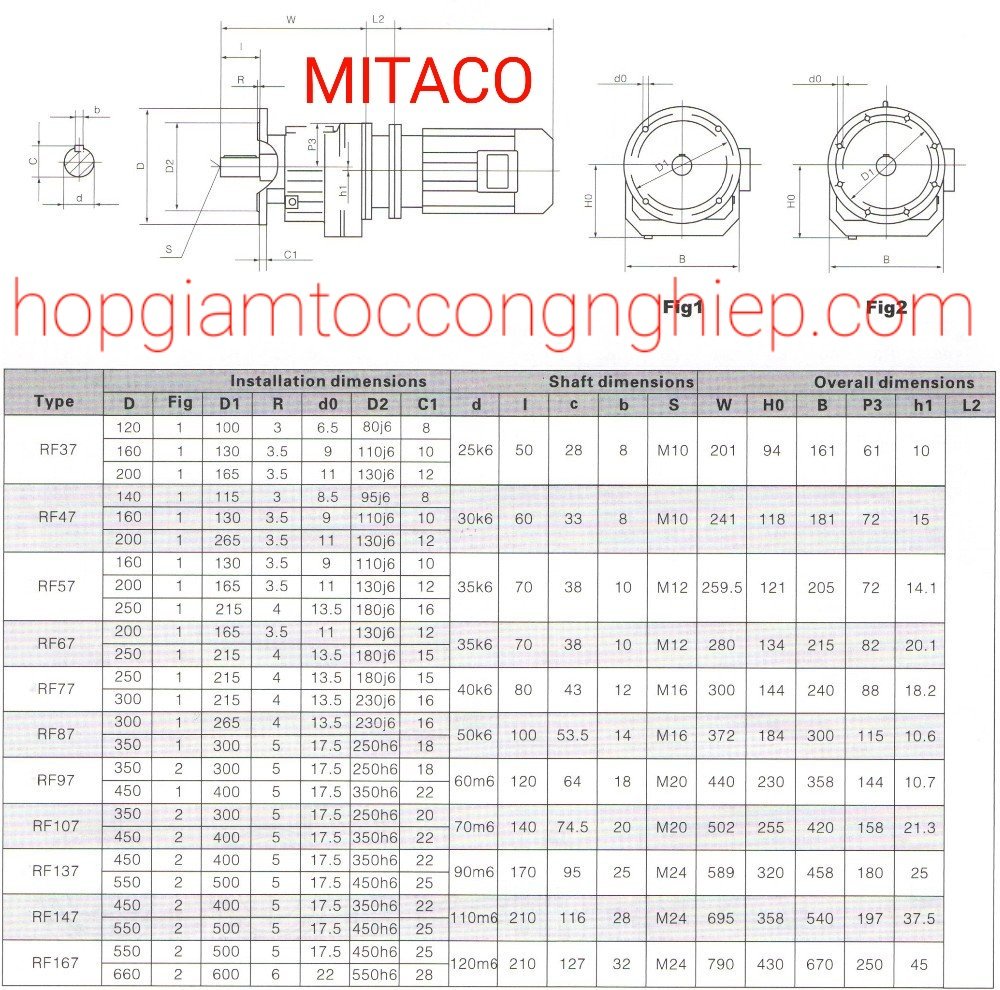 Đường kính cốt trục là 30mm 40mm 50mm 60mm, 70mm 90mm 100mm 110mm 130mm 150mm trục được làm từ thép tôi nhiệt luyện không rỉ sét. Tỉ số truyền có sẵn từ 1/5 tới 1/200. Miền bắc gọi là i = ratio = 5 cho tới = 200. Tốc độ trục ra có từ 10 vòng / phút tới 400 vòng / phút.
