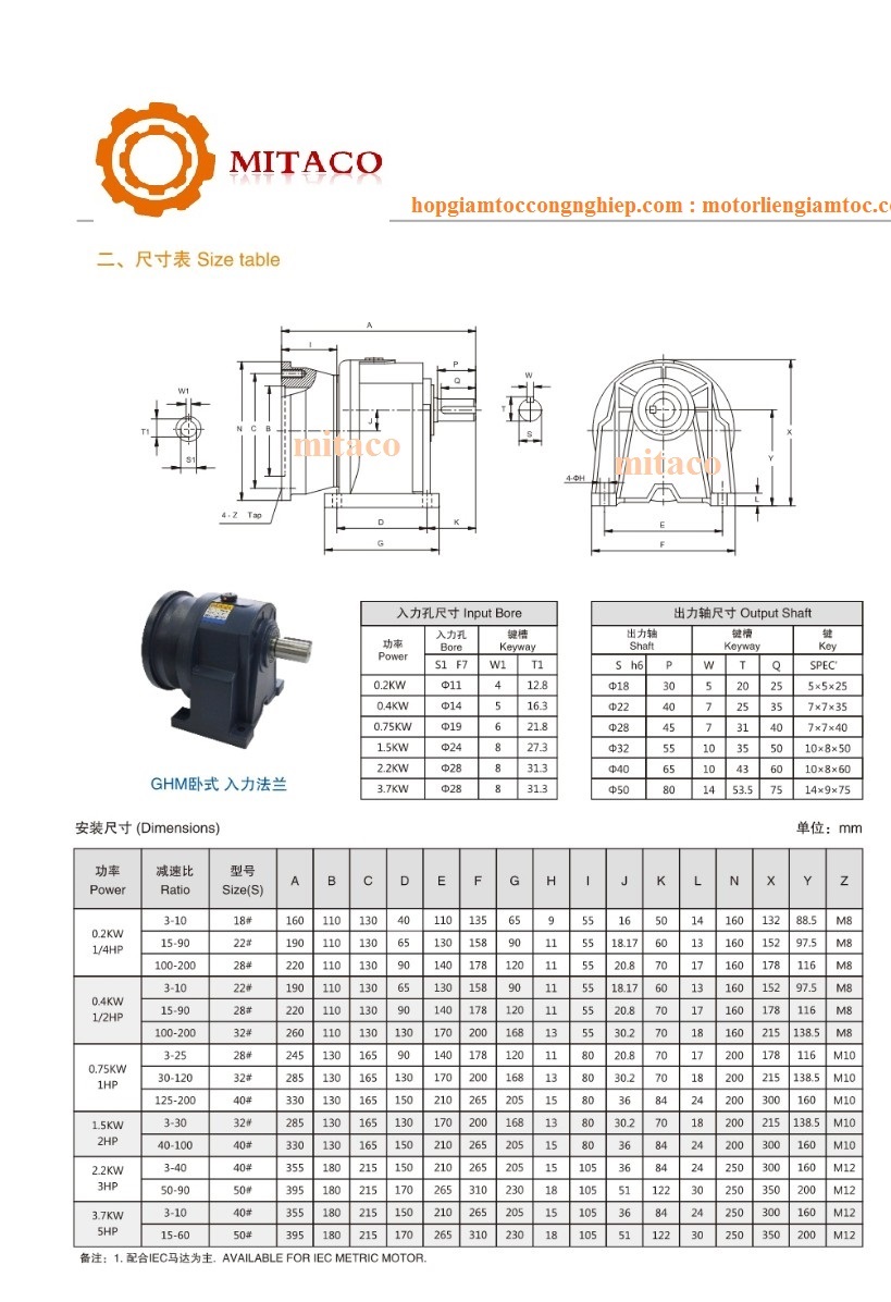 Tốc độ motor giảm tốc 0.25HP 0.2kw tải nặng còn có các ratio sau: 55.87,61.18, 61.3. Tốc độ trục ra trong khoảng 17 tới 29 vòng / 1 phút.