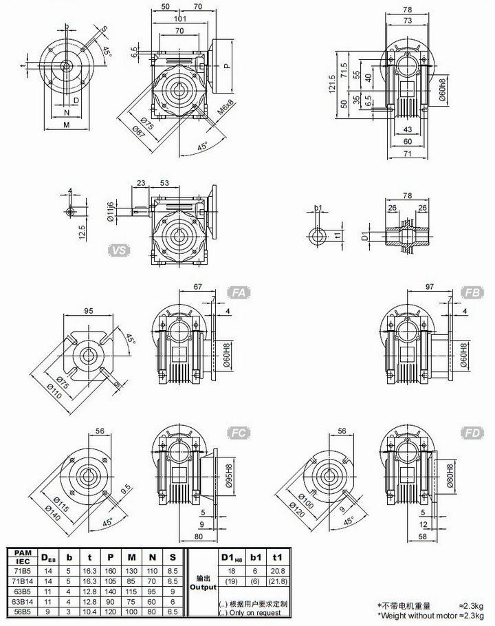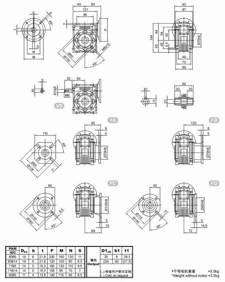 2) Hộp giảm tốc 0.4kw 400w tỷ số truyền 60, trục 28mm mặt bích