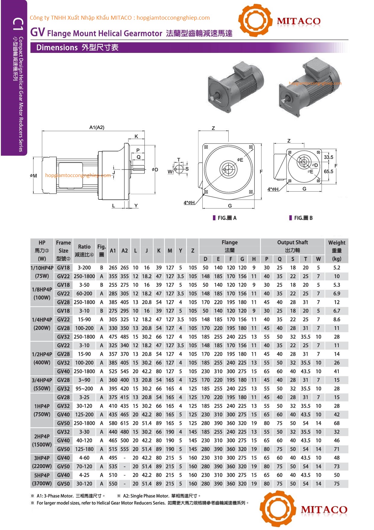 Tốc độ motor giảm tốc 1HP 0.75kw tải nặng còn có các ratio sau: 81.8, 80.55 . Tốc độ trục ra trong khoảng 13 tới 22 vòng / 1 phút.