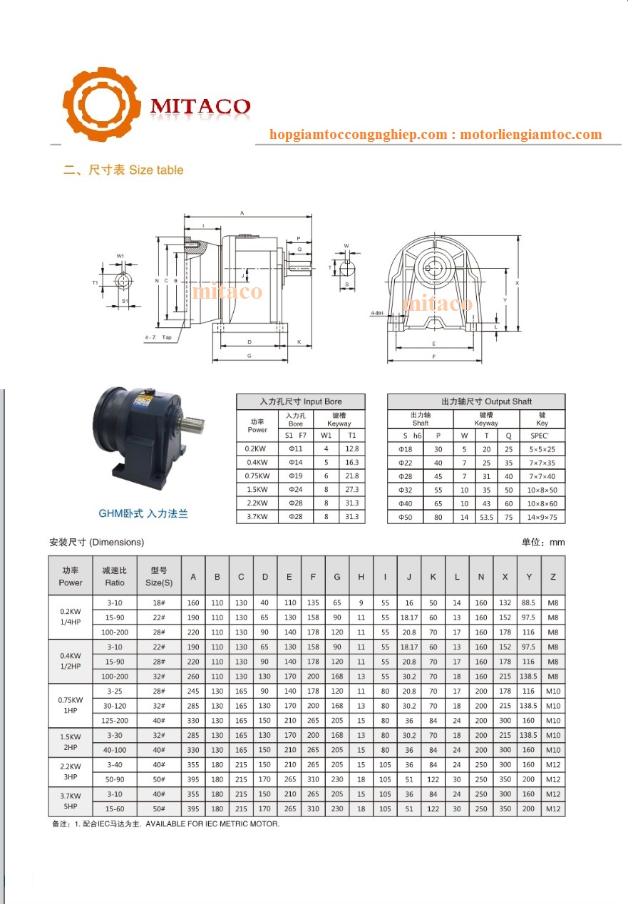 Ratio 1: 100, tỉ số truyền 100, 1:100 thì tốc độ trục ra là 1400 / 100 = 14 vòng phút