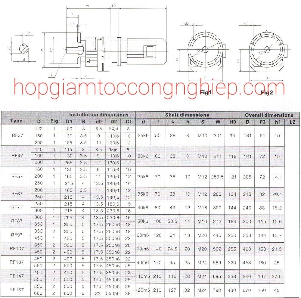 1) Thông số kỹ thuật motor giảm tốc 1.5Kw 2HP tỉ số truyền 5