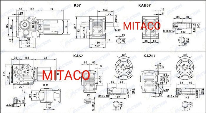 Hộp giảm tốc bánh răng côn K57 là một trong những dòng thiết bị truyền động được sử dụng phổ biến trong các hệ thống máy công nghiệp nhờ khả năng làm việc ổn định, truyền lực mạnh mẽ và tuổi thọ cao. Tại Công ty TNHH Xuất nhập khẩu MITACO, chúng tôi cung cấp đầy đủ các model hộp giảm tốc côn – trong đó có K57 chính hãng, đảm bảo chất lượng – giá tốt – sẵn hàng.