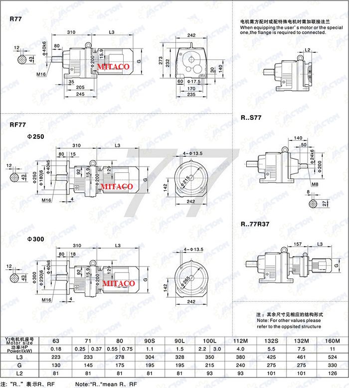Ratio 1: 100, tỉ số truyền 100, 1:100 thì tốc độ trục ra là 1400 / 100 = 14 vòng phút
