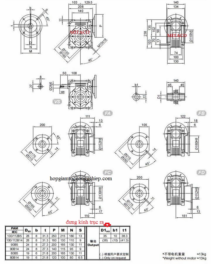THÔNG SỐ KỸ THUẬT CỦA HỘP GIẢM TỐC CỐT ÂM NMRV 090 1/20: