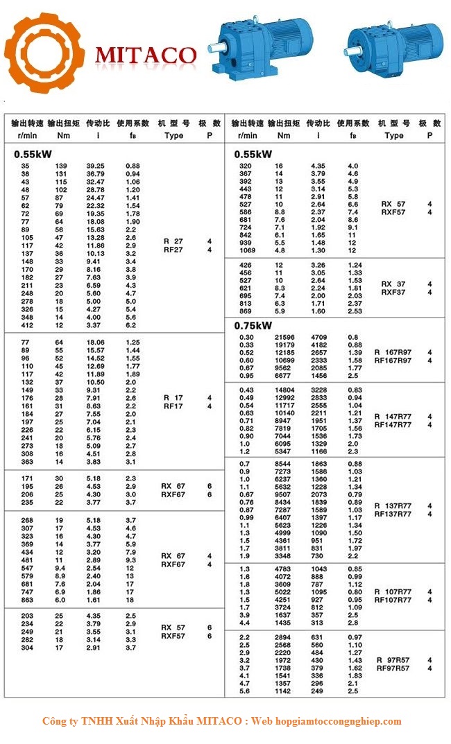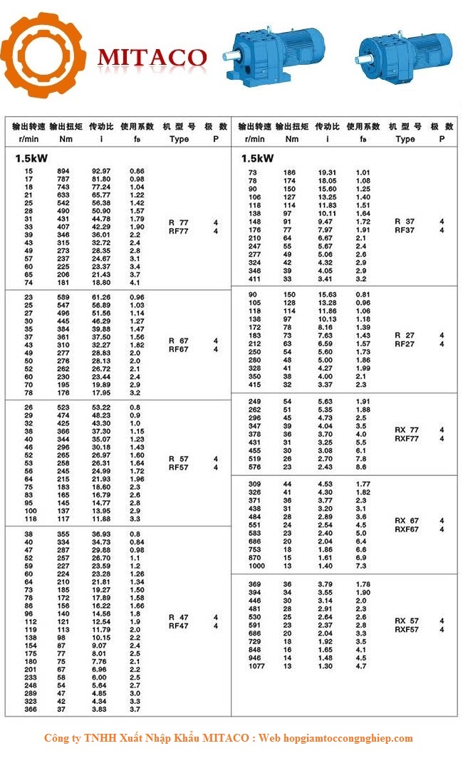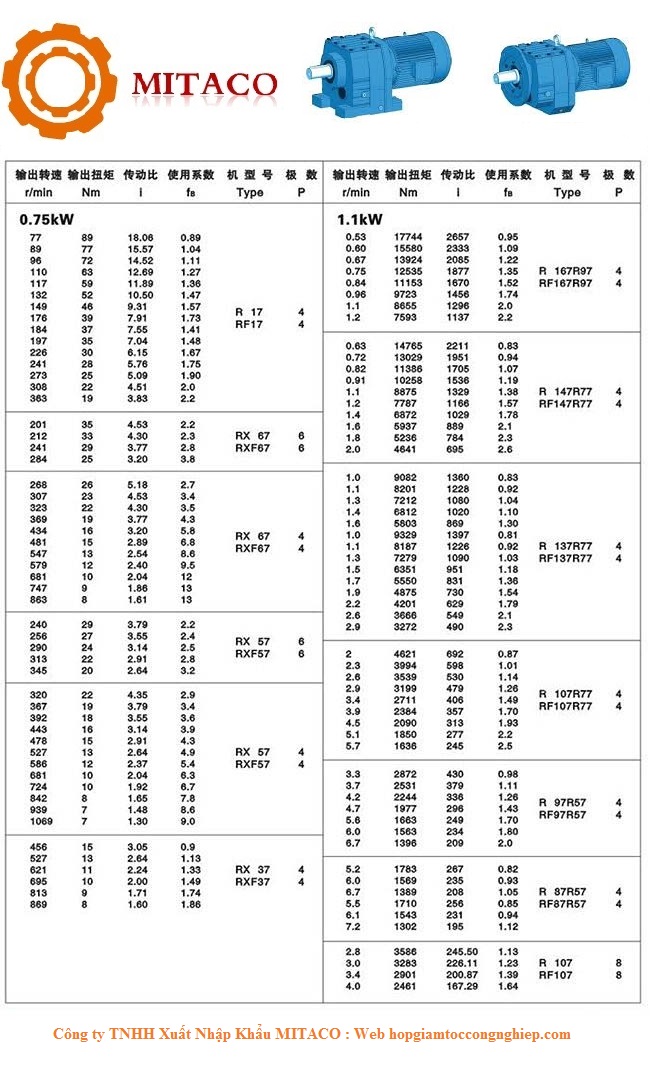 Công ty MITACO là đơn vị chuyên nhập khẩu và phân phối trực tiếp với dòng sản phẩm Motor giảm tốc R87 và các dòng motor giảm tốc khác