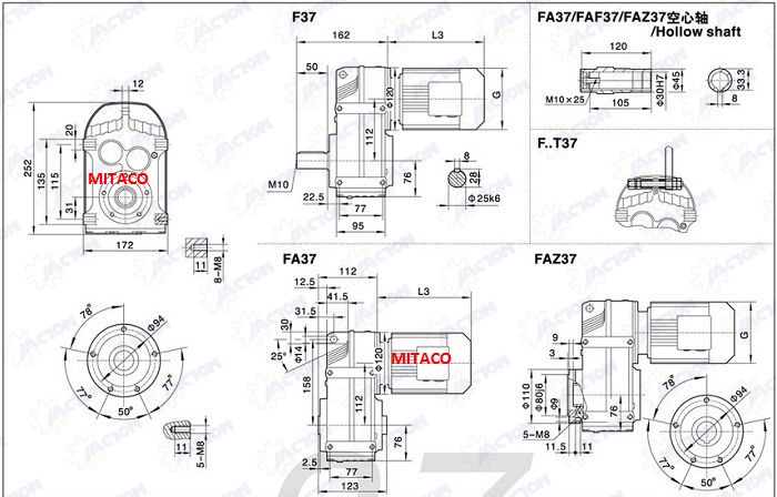 - Kiểu lắp: Mặt bich -Trục thẳng
