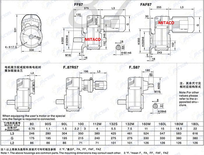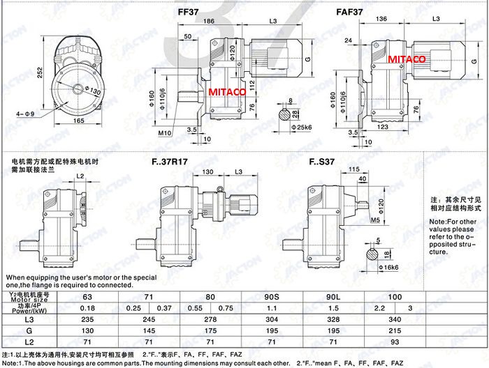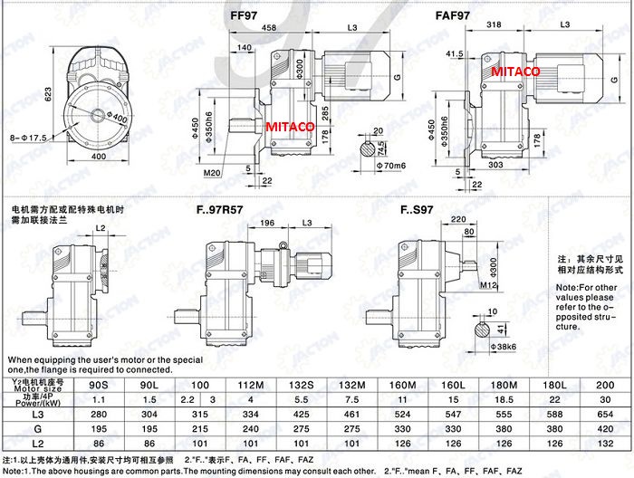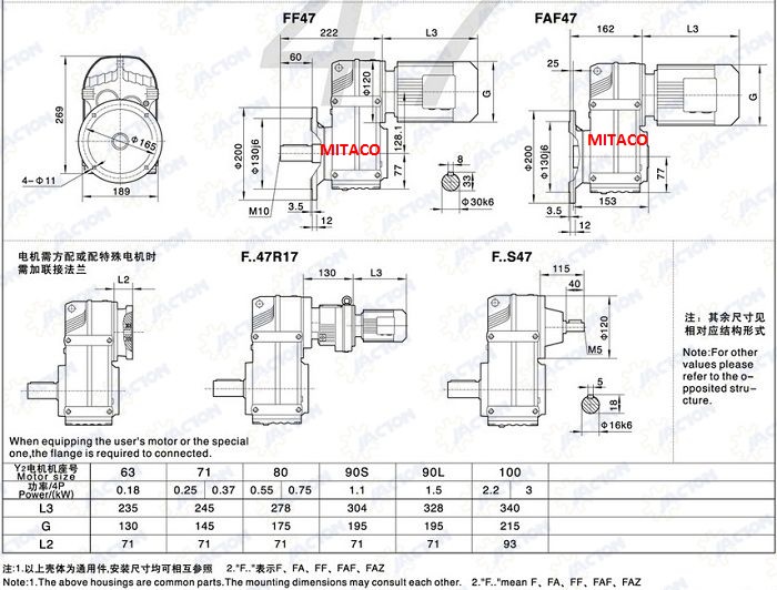 Các công suất thông dụng của motor giảm tốc chân đế là 0.2kw tới 7.5kw