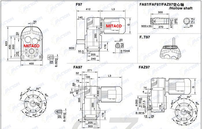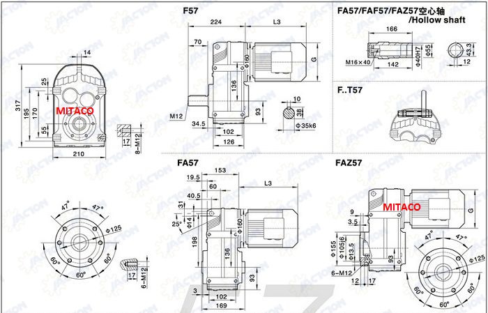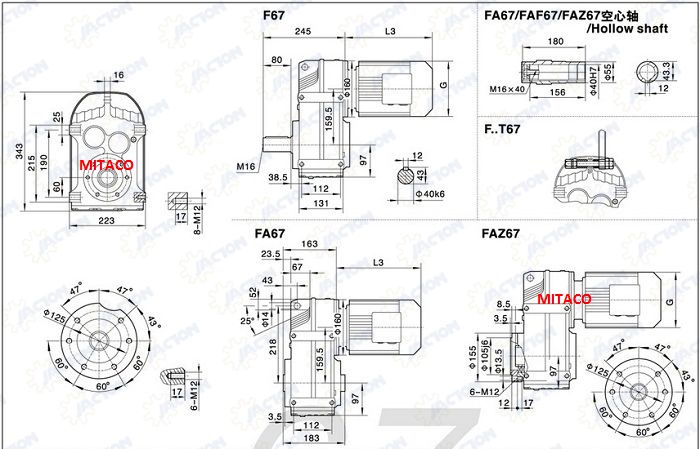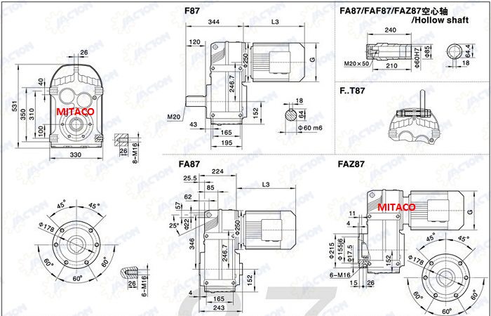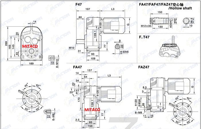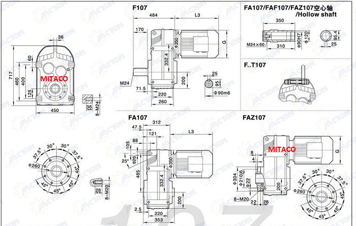 Motor Giảm Tốc trục song song có 8 kiểu như sau khi lắp đặt tải trung, tải nhẹ