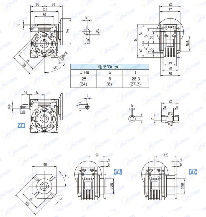 BẢN VẼ HỘP GIẢM TỐC NMRV CÔNG SUẤT 0,2KW ĐẾN 11KW