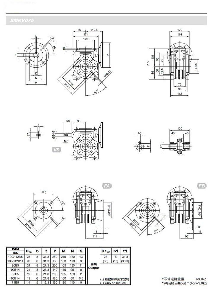 Thông số kỹ thuật của hộp số NMRV size 030, 040, 050, 063, 075, 090, 110, 130, 150