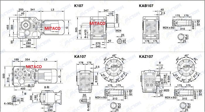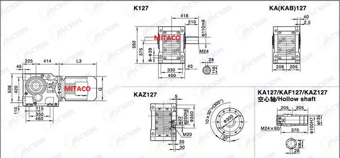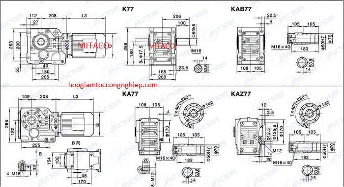 Tại MITACO, hộp giảm tốc trục vuông góc được phân phối với nhiều chủng loại:
