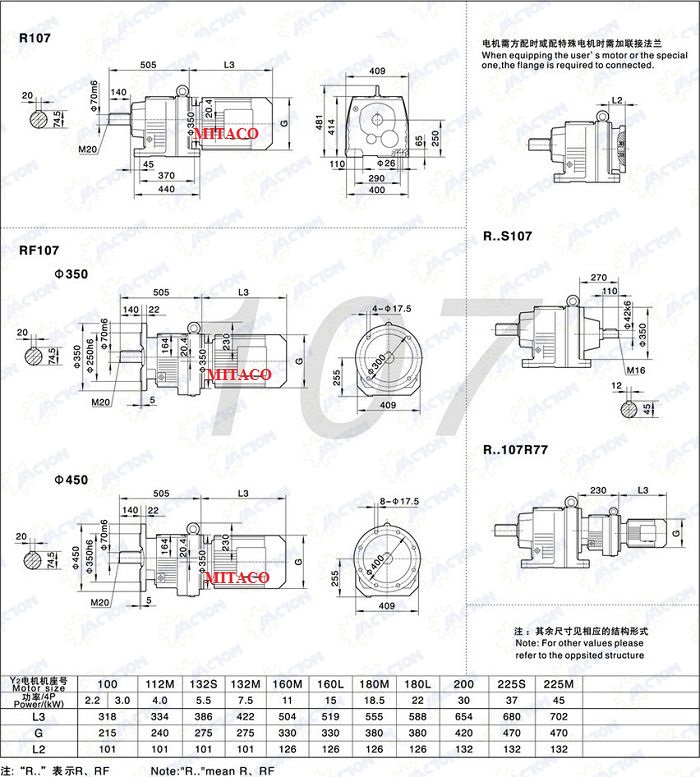 Ratio 1: 100, tỉ số truyền 100, 1:100 thì tốc độ trục ra là 1400 / 100 = 14 vòng / phút