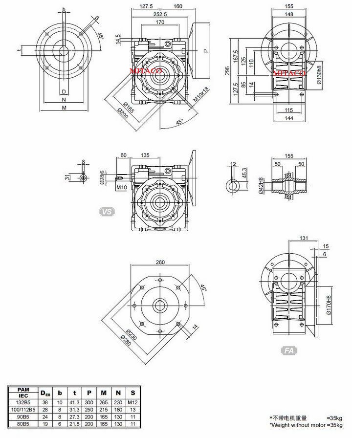 Hộp Giảm Tốc NMRV 110 thường lắp với motor 4kw 5HP 5.5kw 7.5hp 3 ngựa 4P mặt bích; trục motor: 28 mm 38mm