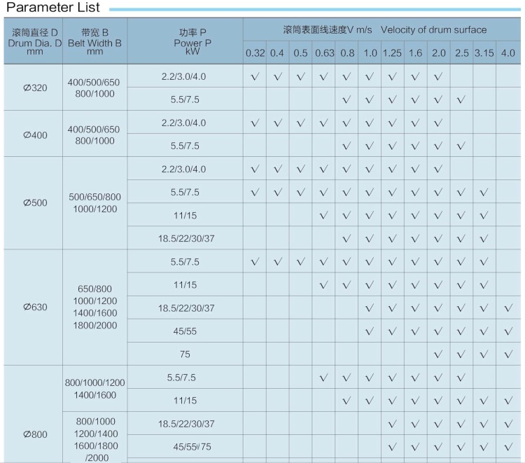 Thông số kỹ thuật của động cơ tang trống - Drum motor: